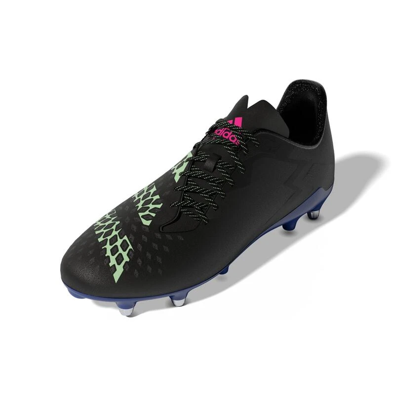 Nous avons sélectionné cette chaussure de rugby légère Adidas pour jouer sur terrain naturels souples et pour tous les joueurs des lignes arrières.Les picots sur la tige douce offrent un meilleur contrôle du ballon. Le laçage asymétrique garantit une plus grande surface de frappe. La semelle extérieure assure un jeu explosif sur terrains gras.