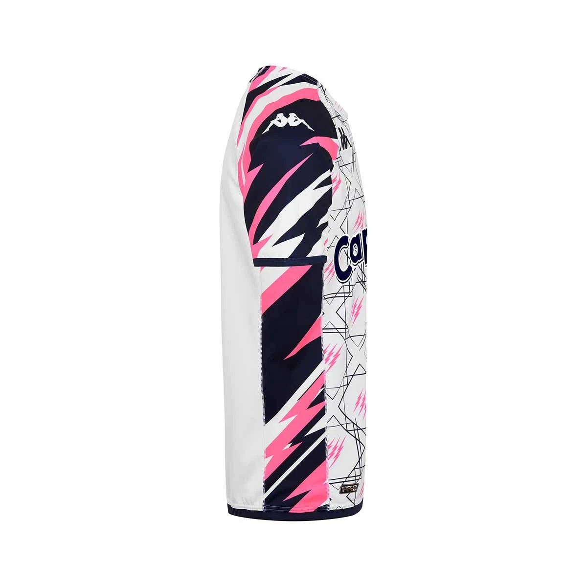 Affichez haut et fort votre soutien au Stade Français grâce au maillot Third officiel de la saison 2022/2023. Les éclairs si chers au clubs sont travaillés avec des formes géométriques sur la face avant mettant en lumière la dynamique du club. Les manches sont travaillées différement avec le mélange du bleu, blanc et rose venant crééer un motif zébré électrique ! Son tissu en polyester respirant lui permet d’évacuer efficacement la transpiration et de garder le sportif au sec le plus longtemps possible. Grâce à la technologie Kombat™ Pro, il réunit l’ensemble des caractéristiques nécessaires à la pratique du sport de très haut niveau. Avec sa technicité qui est la plus aboutie de la gamme professionnelle, ce maillot s’adapte parfaitement aux mouvements de l’athlète et lui offre confort et légèreté dans chacun de ses mouvements. Conçu pour les fans, la coupe est légèrement plus ample que la version portée par les joueurs, mais le design est identique.