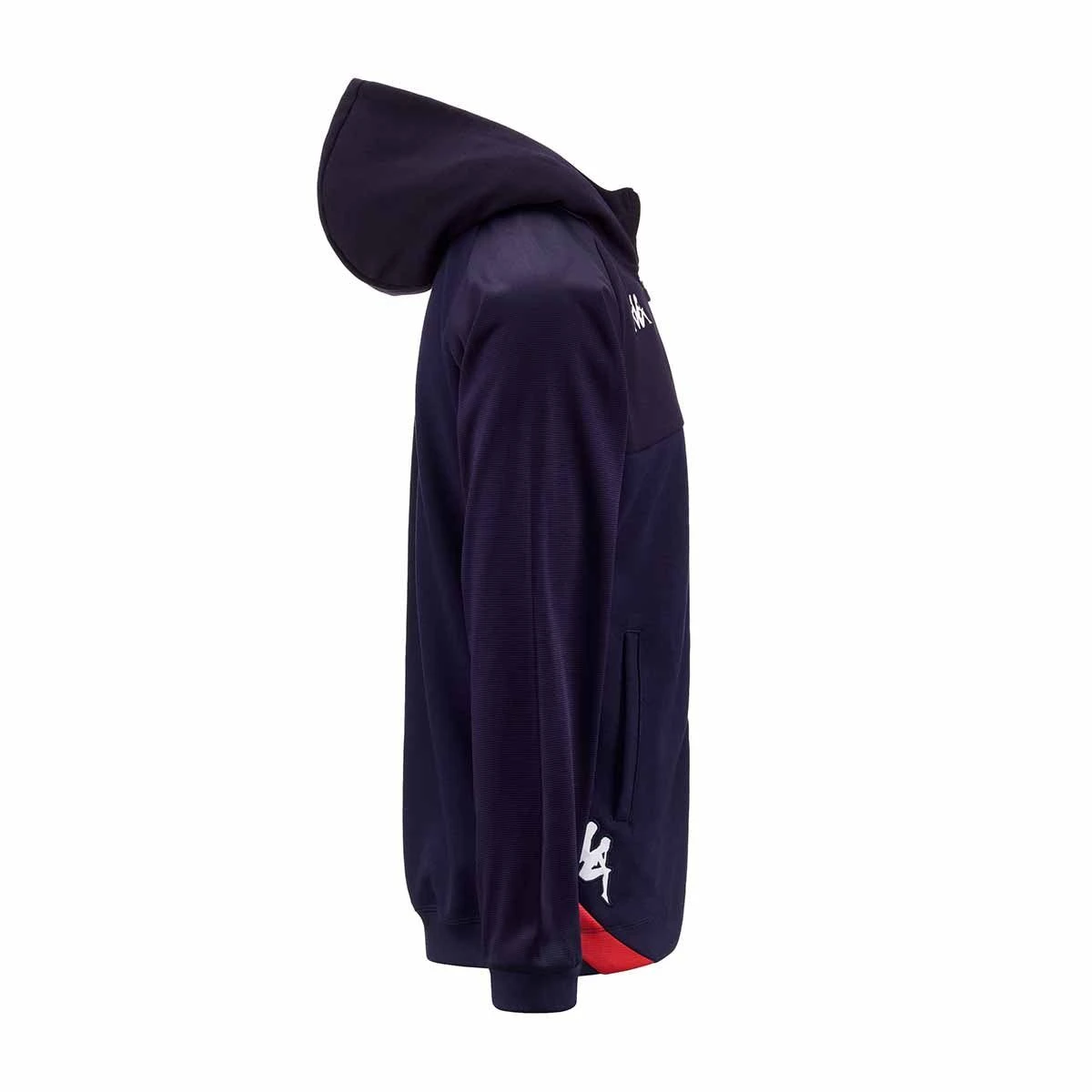 Logo Kappa sur la poitrine et sur les côtés brodé et jacquard. Logo du FC Grenoble sur le devant appliqué avec broderie